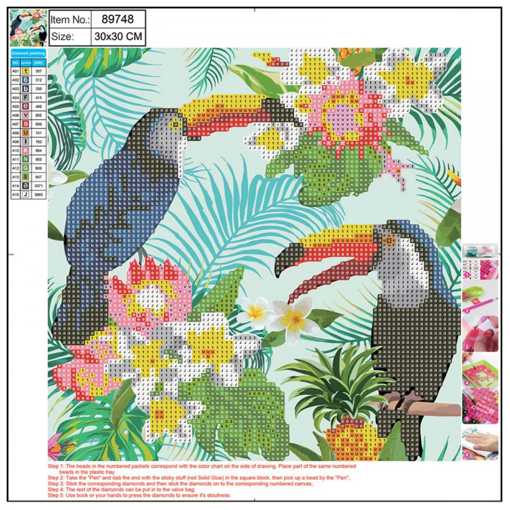 CENTRUM Mosaico Diamanti TUCANI su tela 5D con numeri, 30x30cm