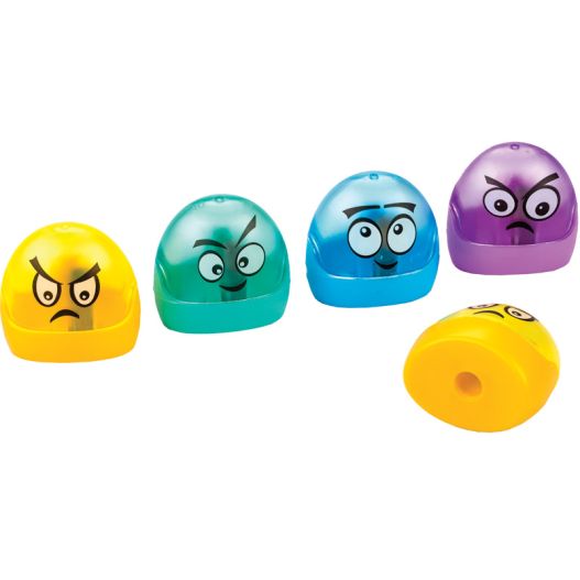 Temperamatite in plastica "Emozioni" con contenitore di Centrum, in 5 soggetti e colori assortiti. Vendita in barattolo di plastica da 56 pezzi assortiti.