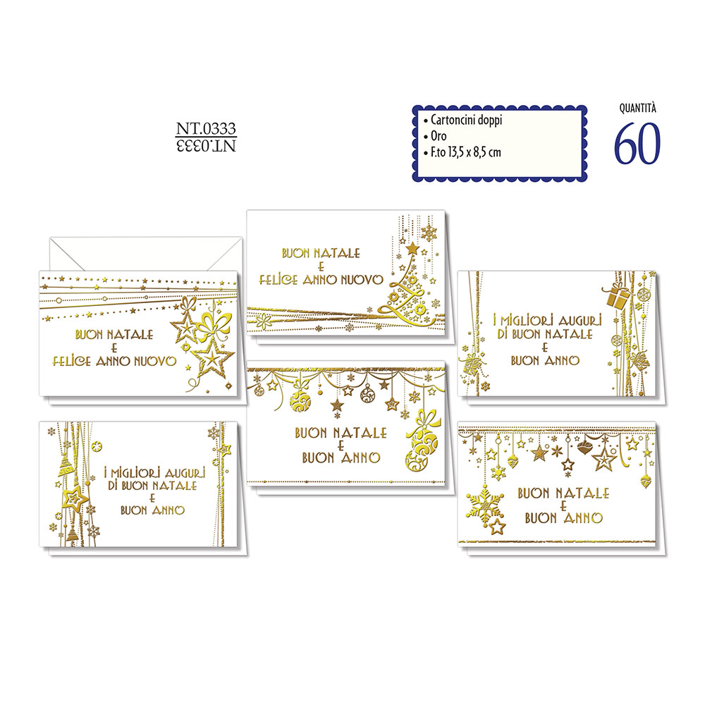 I biglietti in cartoncino doppio Auguri Natale di Cromo si presentano di colore bianco con fantasie oro assortite.