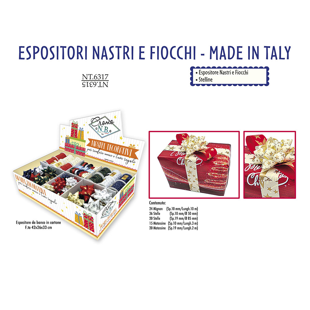 Espositore da banco in cartone Nastri e Fiocchi decorativi di Cromo con soggetti Stelline assortiti.