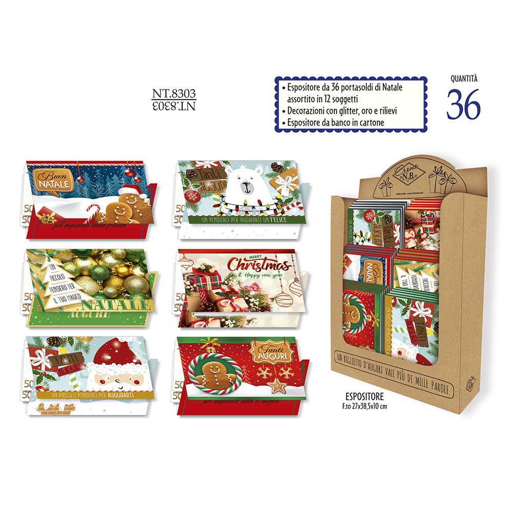 Cromo Espositore da banco Portasoldi di Natale assortiti, 36 pezzi