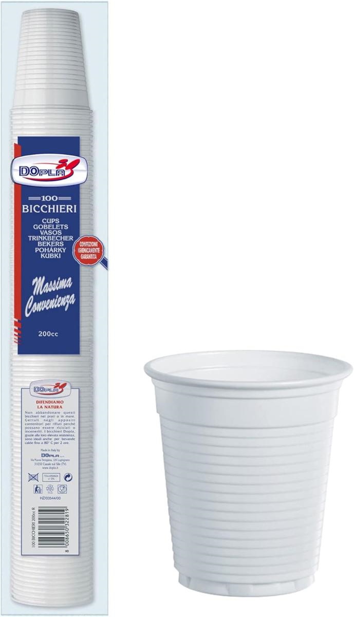 DOPLA Bicchieri in plastica monouso, 200 ml, bianchi, 100 pezzi