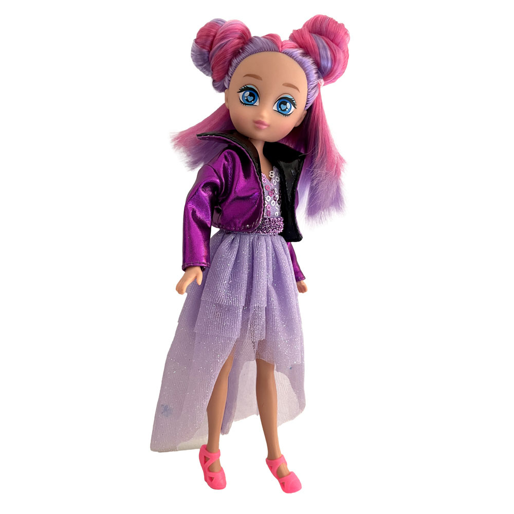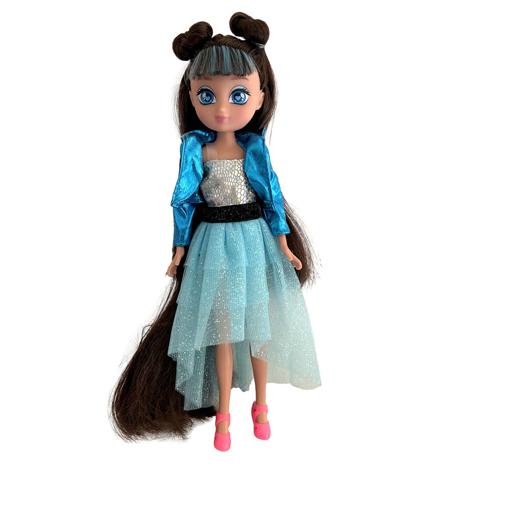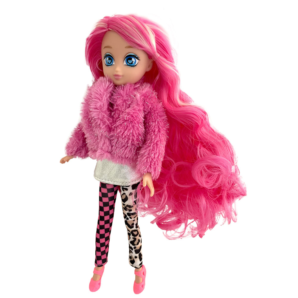 La bambola TOP MODELZ di Dkidz ha lunghi capelli colorati e indossa un vestito scintilante con giacca abbinata.