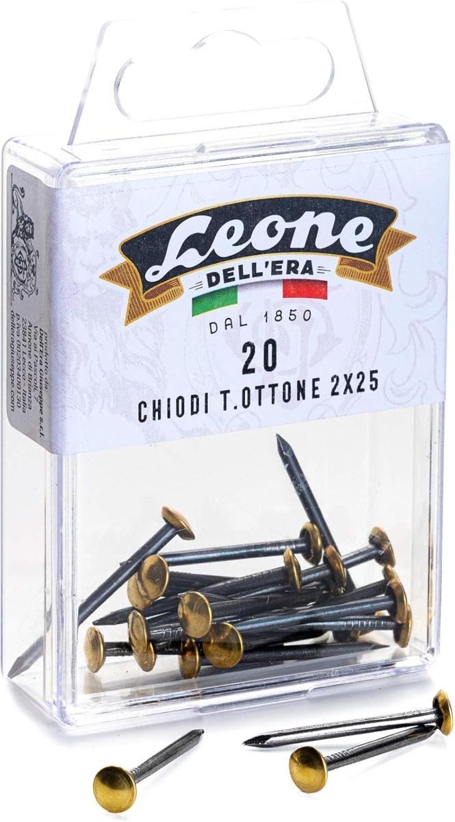 Leone Chiodi acciaio Inox con testa in ottone, 2 x 25 mm, 20 pezzi