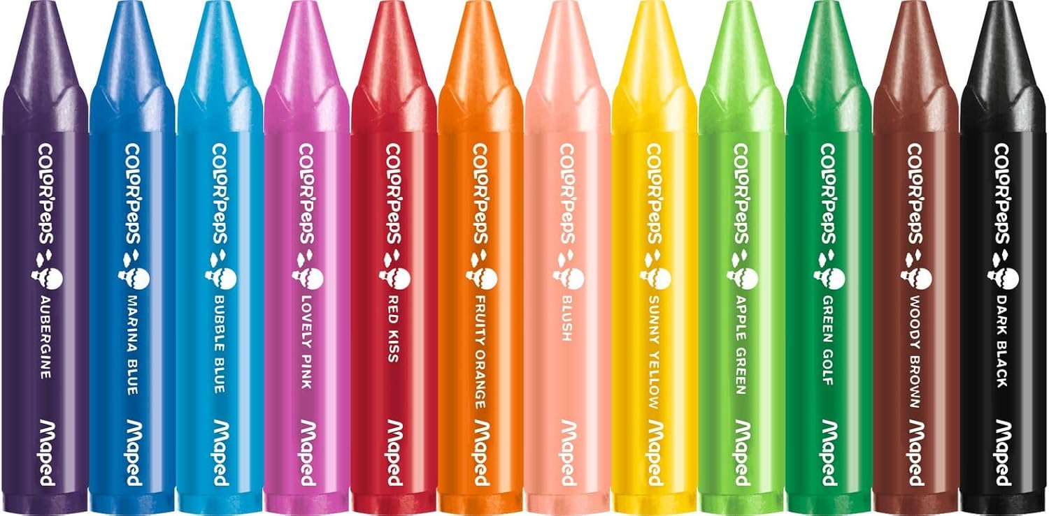 MAPED Pastelli a cera Jumbo triangolari per bambini, 12 pezzi