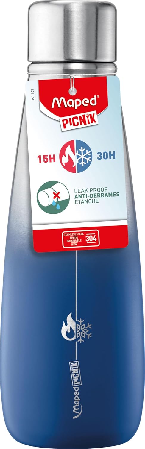 MAPED Picnik Borraccia 500ml, Acciaio Inox, tappo anti-perdite, Grigio