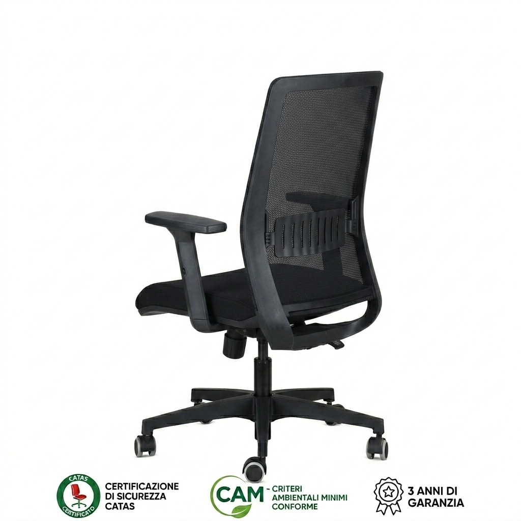 MONE Poltrona operativa ergonomica, schienale in rete, Nero
