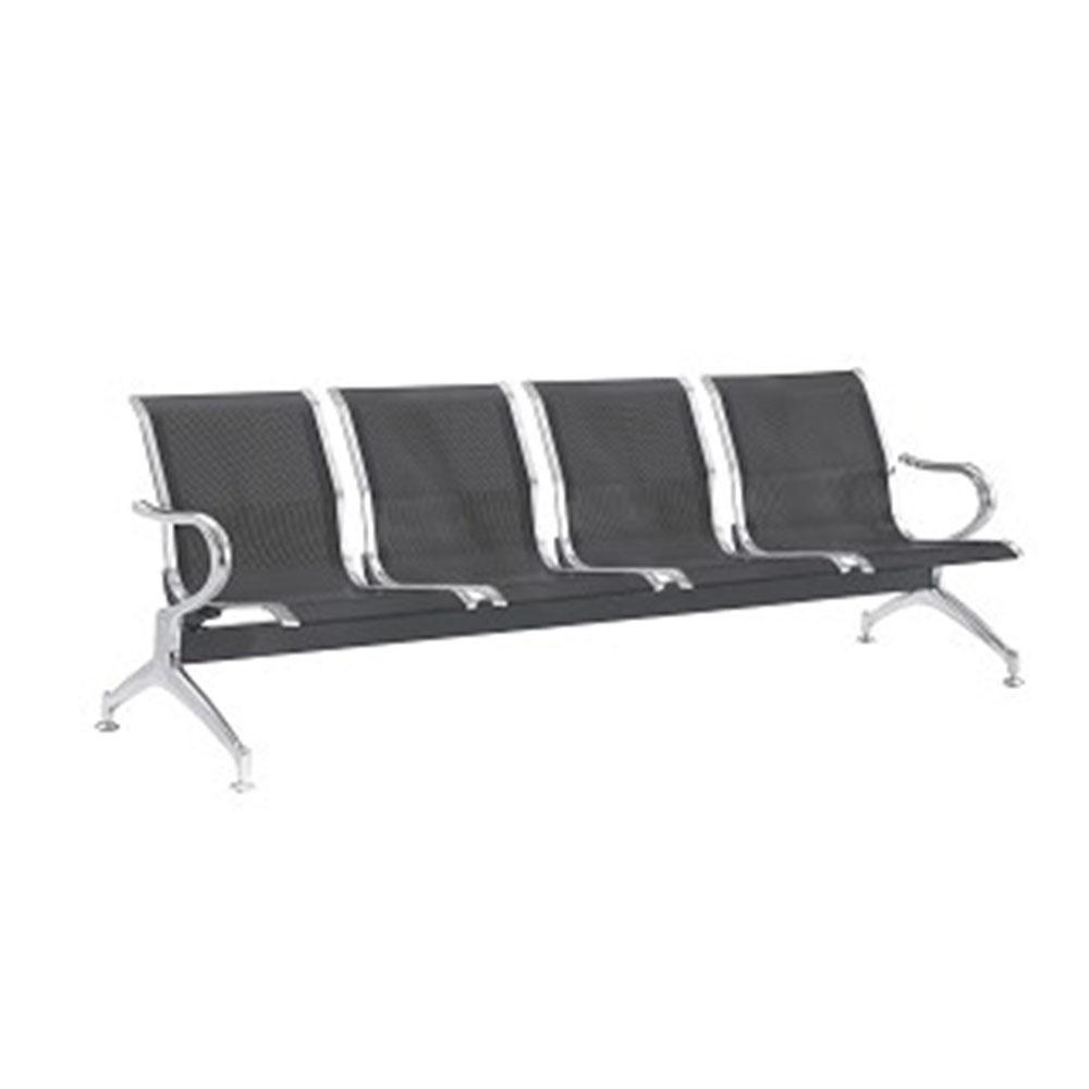 Panca per sale d'attesa 4 posti in acciaio Sedute in acciaio microforato, con trattamento antiruggine e verniciatura elettrostatica. Profili, gambe e braccioli in acciaio cromato Il tavolino è opzionale e sostituisce una delle sedute Specifica per ospedali, aeroporti e locali pubblici