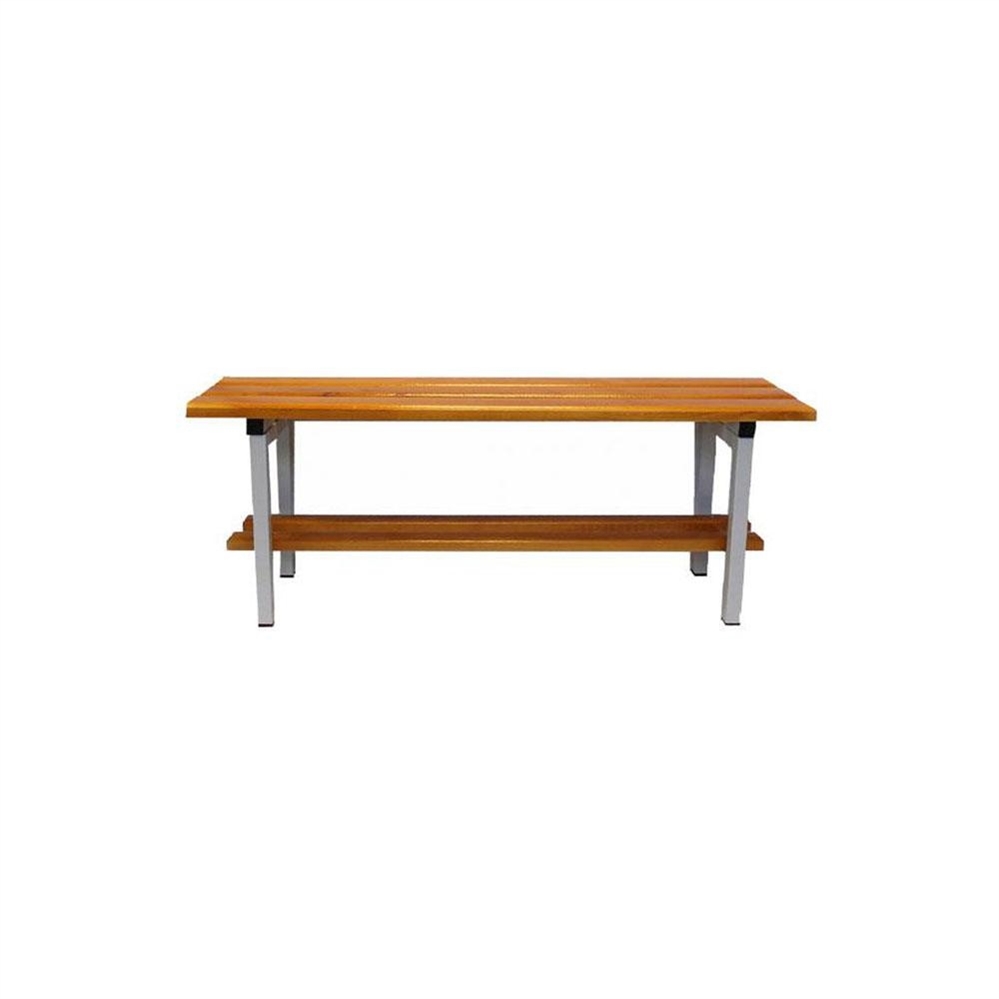 Questa panca spogliatoio da 4 posti in legno si adatta a qualsiasi ambiente: spogliatoio aziendale, palestra, ecc. La struttura è realizzata in tubolare d'acciaio verniciato con polveri epossidiche e la seduta è realizzata con doghe in legno massello.
