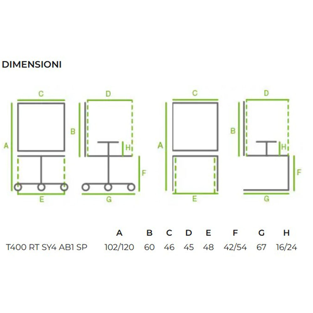 Dimensioni (A – H) | Altezza 102–120 cm • Larghezza 60 cm • Profondità seduta 45 cm • Altezza seduta 42–54 cm |