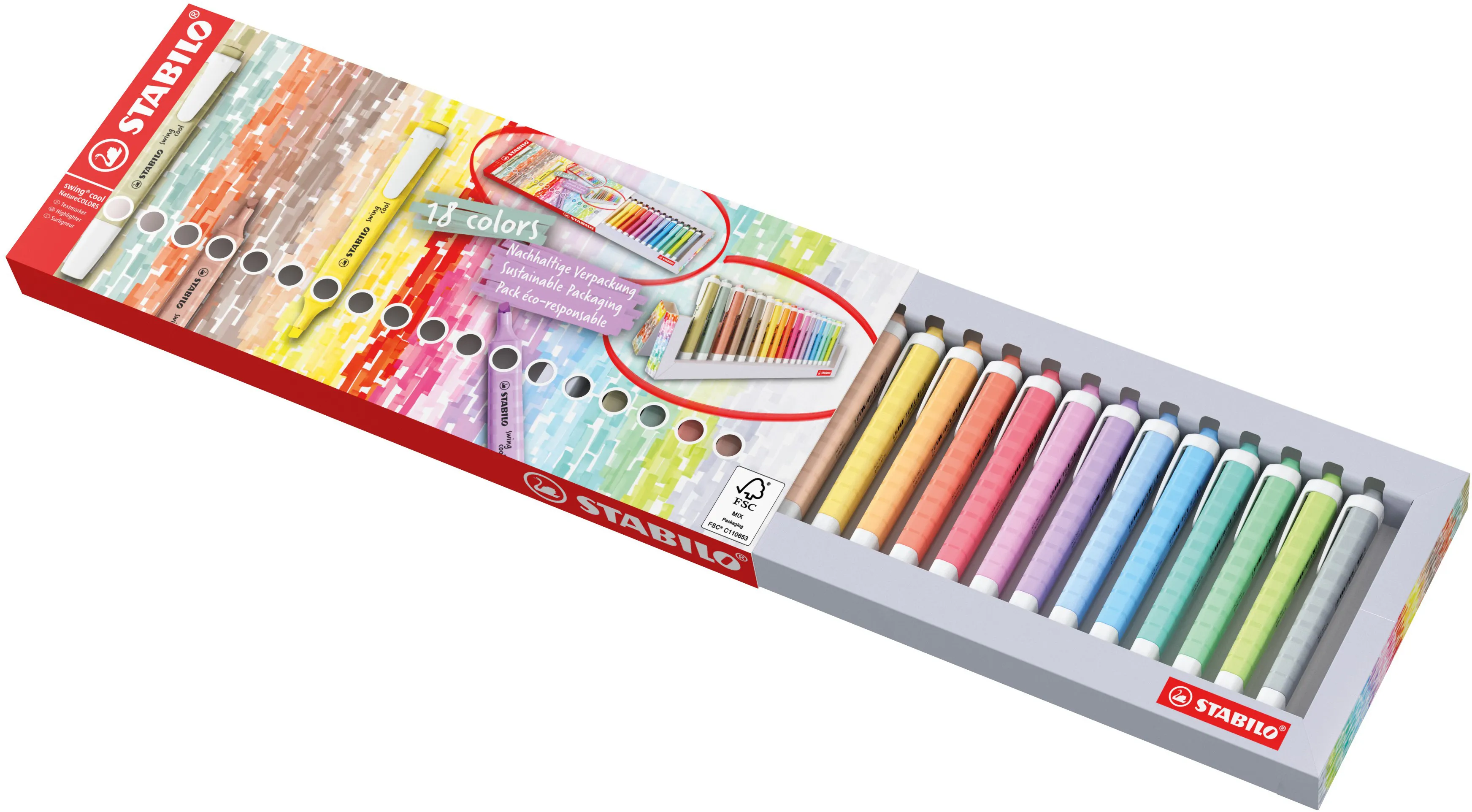 Set Scrivania Evidenziatori Stabilo Swing Cool NatureColors,18 pezzi