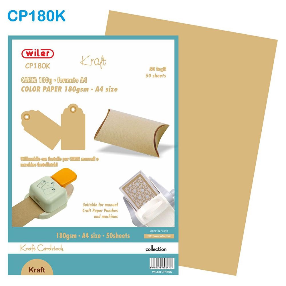 Wiler Carta colorata Kraft A4, 180gsm, 50 fogli