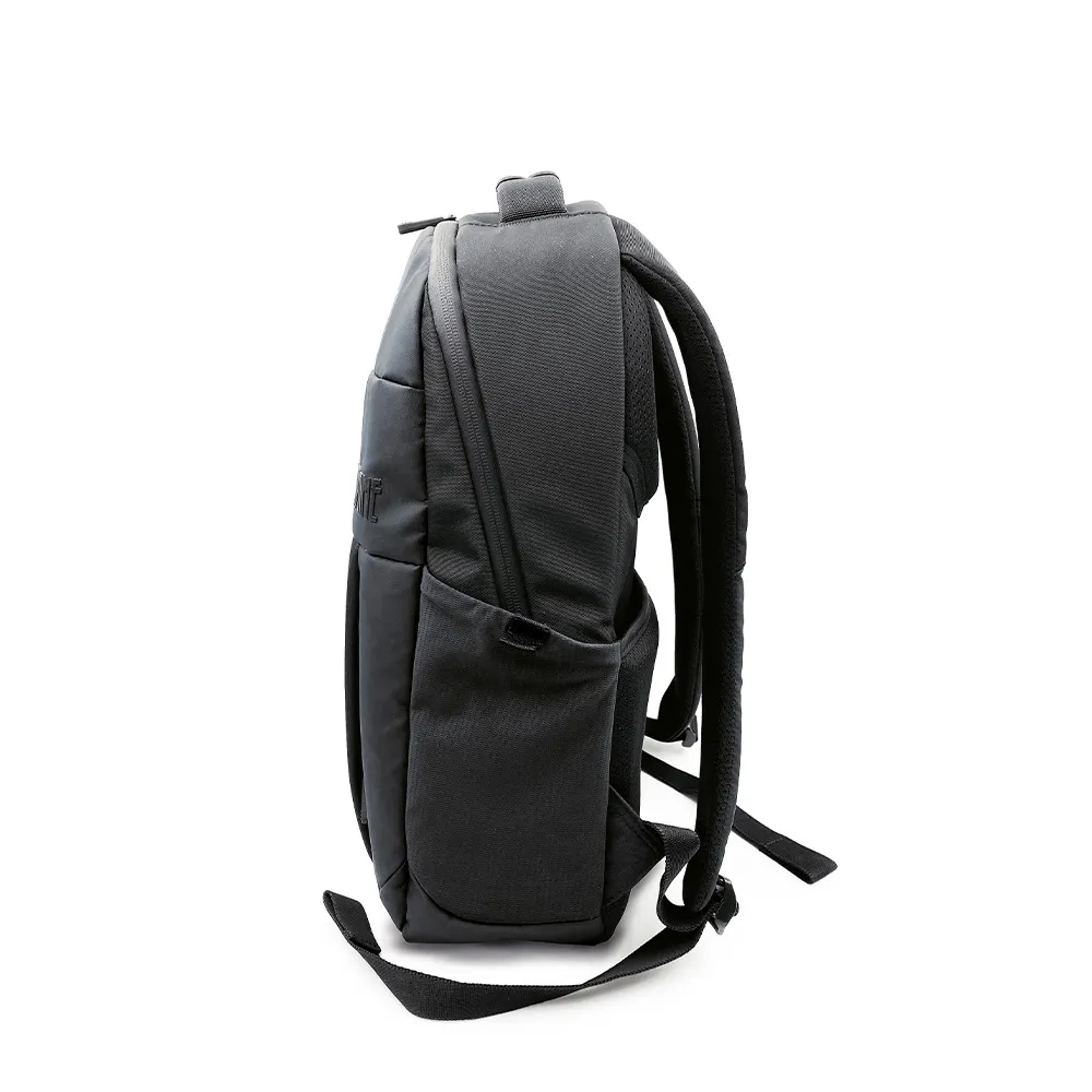 Zaino linea SHUTTLE a 1 scomparto in materiali impermeabili : tessuto + PU con zip antipioggia. Scomparto frontale con zip e tasca laterale porta ombrello / bottiglia, tasche interne porta oggetti, tasca imbottita per computer 15,6″ / tablet, dorso e spallacci traspiranti, scomparto di sicurezza per documenti.